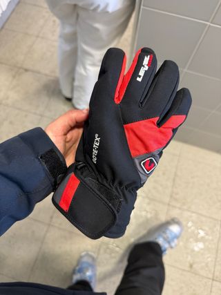 Guantes de esquí de la marca LEVEL con tecnología Gore-Tex. - Color negro y rojo. - Cierre de velcro en la muñeca. - Logo de la marca en la parte superior.