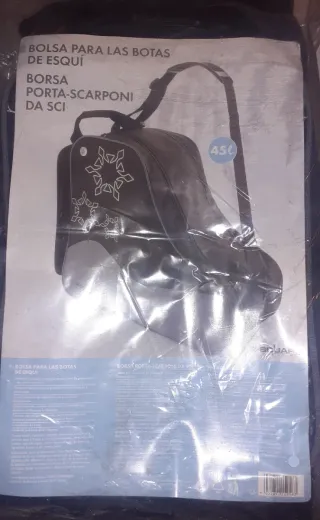 Bolsa de transporte para botas de esquí. - Diseño en color negro con detalles blancos. - Correa ajustable para llevar al hombro. - Compartimento exterior con cremallera.