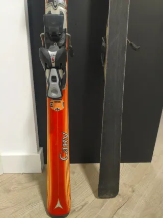Esquís Atomic modelo 6-18 Carv. 180cm - Color naranja con detalles en amarillo. - Marca Atomic. - Modelo 6-18 Carv. Tienen una pequeña abolladura en el canto debajo de una de las fijaciones como se ve en una de las fotos.