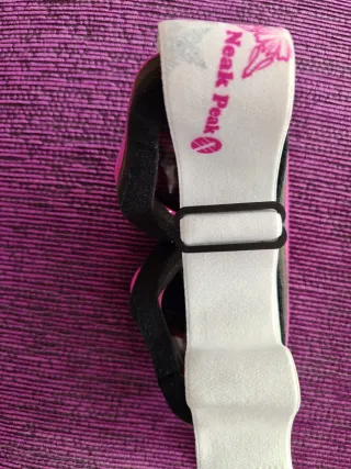 Gafas de esquí o snowboard con un llamativo diseño en color rosa. - Marco de plástico rosa. - Lente oscura. - Correa con detalles gráficos.