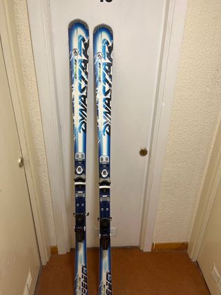 Esquís Dynastar Course con fijaciones. Les falta encerar y hacer el canto. Solo venta en persona ( En Candanchu o Logroño) - Diseño en azul y blanco. - Fijaciones Dynastar.