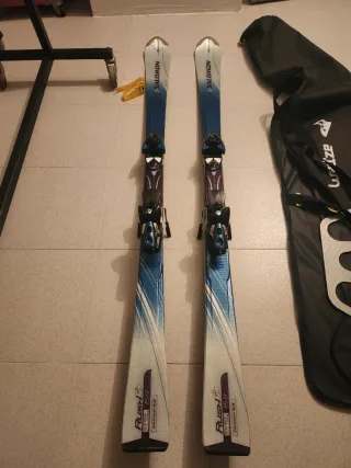 Se venden esquís completos con fijaciones. - Esquís de color blanco-gris y detalles en beige. - Fijaciones negras y plateadas. - patin en buen estado - filo necesita taller (solo afilar) - buen estado, listos para su uso - talla 159
