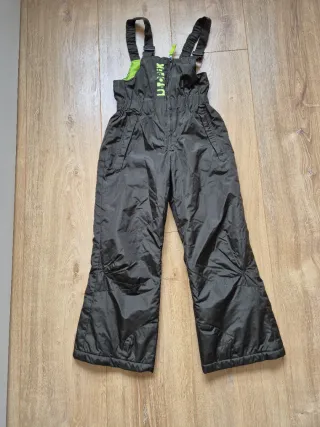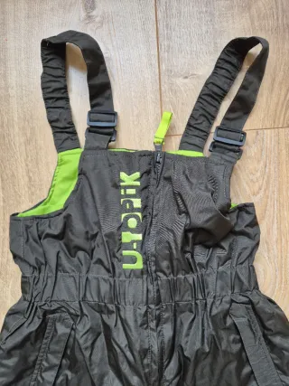 Pantalón de esquí unisex con tirantes ajustables y cremallera frontal. Diseño acolchado para mayor comodidad. Tengo otro talla 6 años - Color negro. - Detalle de logo U-TOPAK en verde. - Forro interior verde. - Bolsillos laterales.