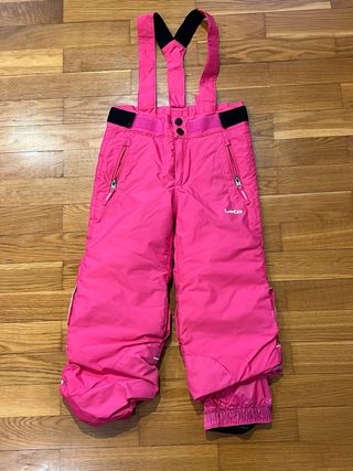 Pantalón de esquí infantil de la marca Wedze, largura extensible. - Color rosa vibrante. - Impermeable. - Talla 4 (98-104 cm). - Tirantes ajustables. - Cremalleras en los bolsillos.