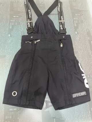 Pantalón corto de corredor de esquí alpino de la marca Spyder, talla 12 años o 146 de alto Diseñado para la competición y el rendimiento en la nieve. - Tirantes ajustables con logo. - Cremalleras laterales. - Logo de Spyder en la pierna.