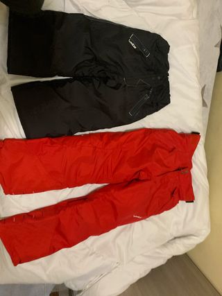 Pantalones de esquí para niños en color negro y rojo. - Pantalones de esquí negros. - Pantalones de esquí rojos. - talla 8 el color rojo -talla 2 el color negro