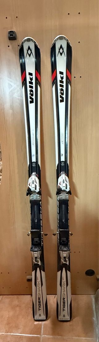 Esquís Völkl Tigershark -Fijaciones MARKER incluidas Medida 1,63 mtrs largo - Diseño blanco y negro con detalles rojos. --En este producto no hago envios