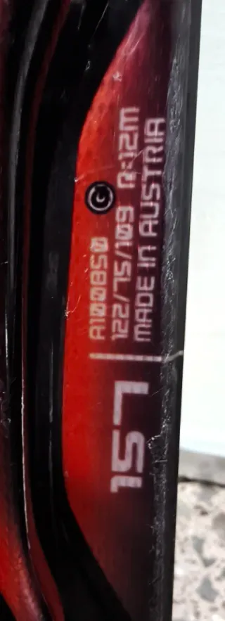 Esquís de la marca Blizzard. - Diseño en rojo y negro. - Fijaciones incluidas.