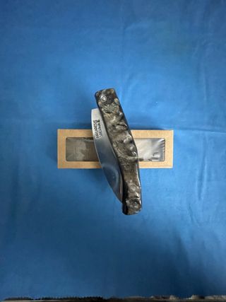 Herramienta de corte compacta con un diseño clásico. - Mango de material negro con detalles. - Acabados en latón en los extremos.