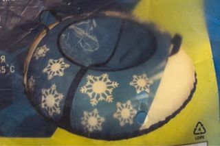 Trineo hinchable con un divertido diseño de copos de nieve blancos sobre fondo azul. - Diseño con copos de nieve. - Color azul.