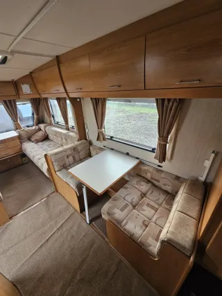 A high-quality used Uk caravan at a reasonable price. It is a Compass Corona 626. It is in a very decent condition. It is 2008-09 model. It is ideal for a family because it is a spacious caravan with a big front seating area that convets to a double and a dining area that convets to to a single and punk bed. There is also a fixed bed with a storage place underneath it. The caravan has all accessories like a big wash room with a shower. It is literally equipped with everything you need and ready to go. It comes with complete owning. It will be available to see in Mijas, Málaga, Spain in the next week. A special offer at 9950€.