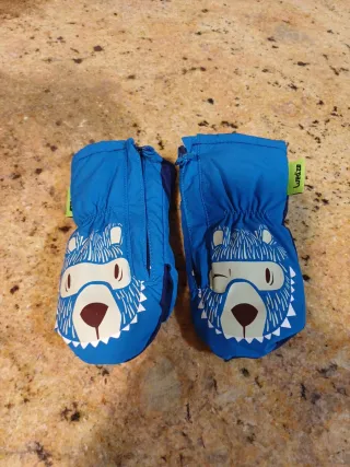 Manoplas de esquí para bebé de Decathlon, con un divertido diseño de oso. - Color azul brillante. - Cierre de cremallera. - Detalle de cara de oso con gafas.