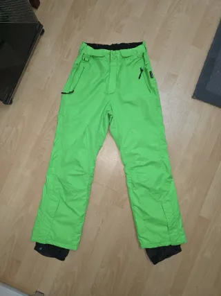 Pantalón de esquí en color verde lima, talla 42. Cintura 44cm. Largo 108cm. UNISEX. - Cremalleras en los bolsillos. - Cintura ajustable. - Forro polar interior. - Polainas para nieve. Marca CRIVIT. - Parte inferior reforzada.