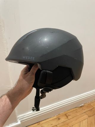 Casco de esquí de la marca Wedze. Diseñado para ofrecer protección y comodidad. - Color gris oscuro. - Correa ajustable con cierre de clip. - Acolchado interior para mayor confort.