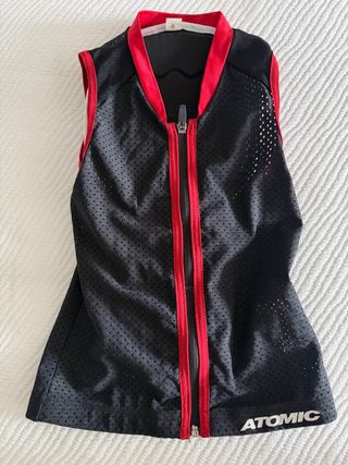 Protector de esquí Atomic para niño, talla JM. Ideal para proteger durante la práctica de deportes de invierno. - Color negro con detalles en rojo. - Cierre de cremallera frontal. - Tejido de malla transpirable.