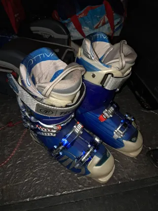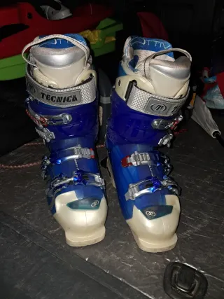 Botas de esquí en talla 25.5. - Color azul y blanco. - Cierres de hebilla. - Diseño deportivo. Usadas pero en buen etado....les queda mucha vida
