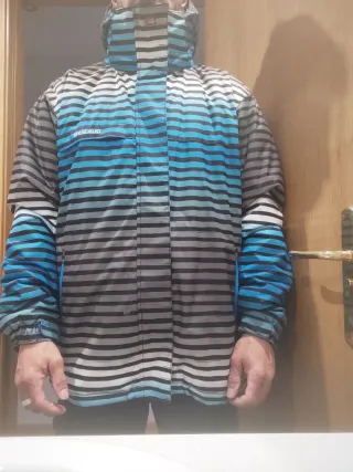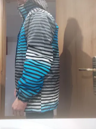 Chaqueta de esquí para niño de 8 años, ideal para actividades en la nieve. Combina azul y negro. Está en perfecto estado. Lo entrego en Las Rozas o en Parla. También hago envíos - Diseño bicolor. - Con capucha. - Cierre de cremallera.
