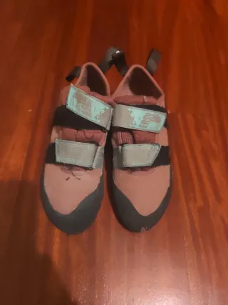 Pie de gato infantil para escalada. - Cierre de velcro. - Color rosa y negro. - Suela de goma.