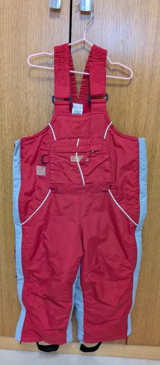 Mono pantalón de esquí para niños y niñas de 3 años. Ideal para disfrutar de la nieve. - Color rojo y azul claro. - Tirantes ajustables. - Bolsillo frontal con cremallera.