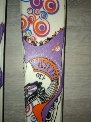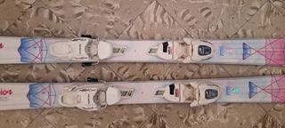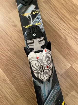 Se vende juego de esquís con fijaciones. - Diseño gráfico llamativo. - Fijaciones incluidas. - 157 cm largo