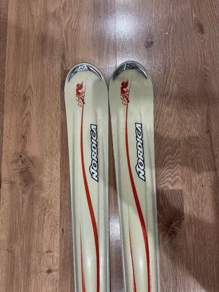 Esquís Nordica de 155cm. - Fijaciones incluidas. - Diseño clásico.