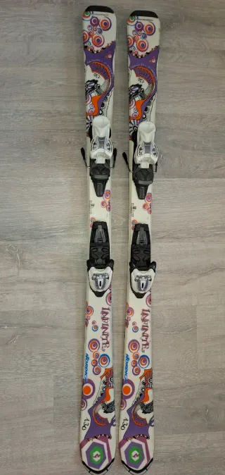 Esquís infantiles de la marca Nordica con un diseño colorido y divertido. - Longitud de 130cm. - Fijaciones incluidas.