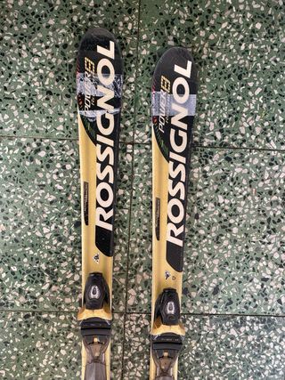 Esquís Rossignol Power B. Necesitan un repaso. Las marcas blancas son de cinta de pegamento. - Marca: Rossignol - Modelo: Power B - Diseñados para esquiadores jóvenes.