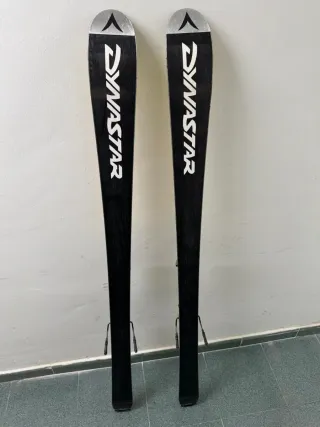 Esquís Dynastar de color amarillo con fijaciones. Talla: 150cm Están bastante usados, pero en buenas condiciones para seguir usándolos.