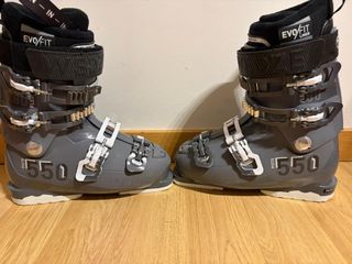 Botas de esquí para mujer de Decathlon, con un índice de flexión 80. - Color gris. - Cierre con 4 ganchos. - Incluye correa de velcro en la parte superior. - Suela con sistema Piste 550.