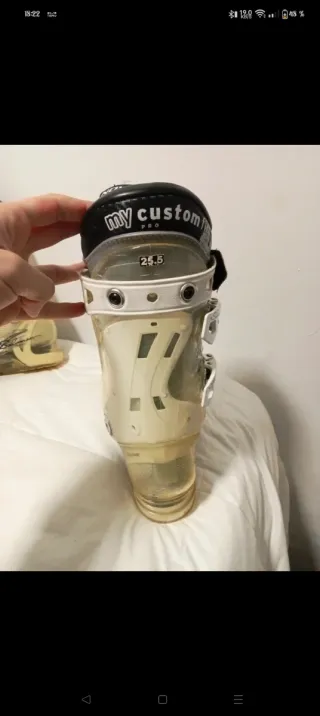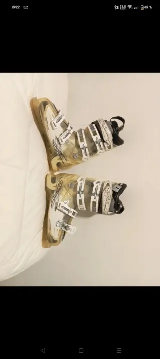 Botas de esquí Atomic para mujer en talla 38. Diseñadas para ofrecer comodidad y rendimiento en la pista. Talla botas esquí 24,5-25 - Cierre con hebillas ajustables. - Diseño en blanco y gris. - Marca: Atomic, valoradas en 325 euros.