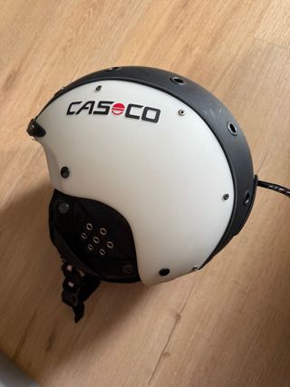 Casco de la marca CASCO, ideal para esquí y snowboard. Diseñado para ofrecer protección y comodidad en la montaña. - Color blanco y negro. - Cierre ajustable. - Ventilación integrada.