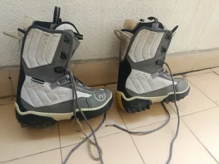 Botas de snowboard Quechua en color gris y blanco. Diseñadas para ofrecer comodidad y soporte en la montaña. - Cierre con cordones. - Suela de goma adherente. - Interior acolchado.