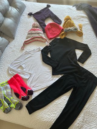 Lote ropa termica para niña talla 5/6 años 2 camisetas termicas 1 pantalon termico 2 pares calcetines esqui 4 gorros