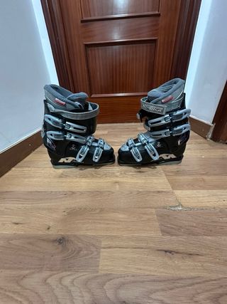 Vendo botas de esquí de mujer Nordica Sportmachine en muy buen estado. Son un modelo cómodo y a la vez preciso, ideal para esquiadoras de nivel intermedio a avanzado. Flex 85, perfecto para quien busca control sin que la bota sea demasiado dura. Talla 24.0 / 24.5 Mondo (longitud de suela 285 mm). Disponen de 4 ganchos metálicos con microajuste y power strap amplio para mayor sujeción. Suela ISO 5355 compatible con cualquier fijación alpina estándar. Son unas botas cálidas, estables y diseñadas específicamente para mujer, con buen acolchado y ajuste cómodo. Estado: usadas, con marcas normales de uso, pero totalmente funcionales. L