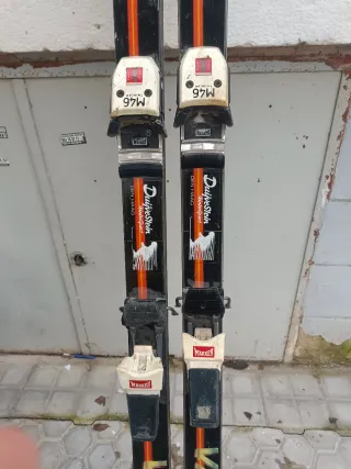 Se venden esquís DuijveStein M46 con fijaciones Marker. - Esquís de la marca DuijveStein. - Modelo M46. - Fijaciones Marker. - Diseño con detalles en naranja y negro.