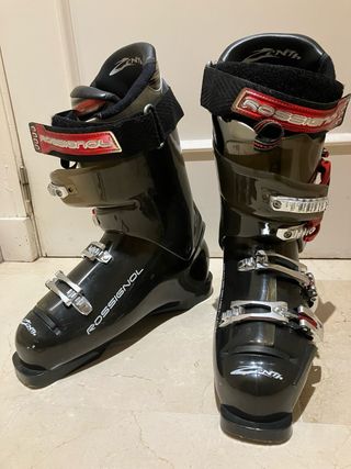 Botas de esquí Rossignol en color negro y detalles rojos. Buen estado. Las vendo porque hace años que no esquío. - Talla 43. - Cierres de hebilla. - Marca Rossignol. - Modelo Zenith.