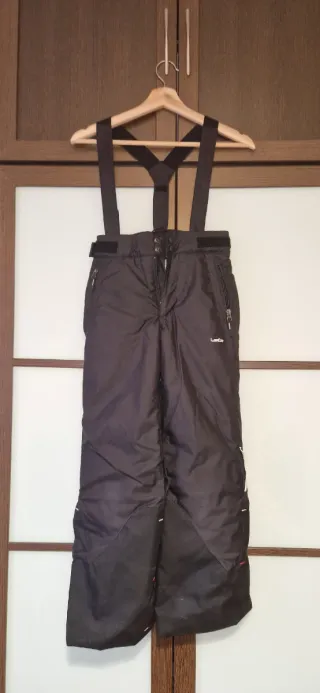 Conjunto de nieve/esquí para niño/a de 8 años. - Chaqueta negra con detalles en verde lima. (134-140cm) - Pantalón negro. 8 años (125-132cm) Regalo manoplas T 10 años.