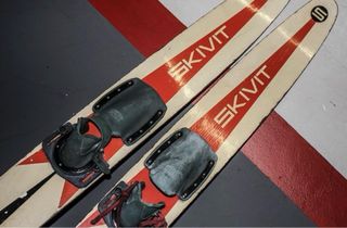 Se vende pareja de esquís acuáticos SKIVIT. - Diseño clásico con detalles en rojo. - Incluye fijaciones. - Ideales para disfrutar del agua.