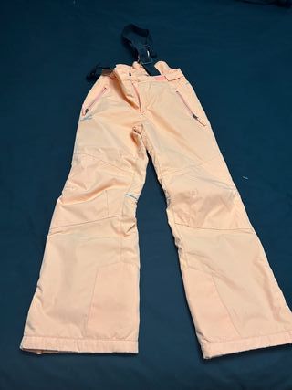 Pantalón de esquí para niña de 14 años, ideal para disfrutar de la nieve con comodidad y estilo. Muy buena marca. Precio original sobre 130 euros - Color melocotón. - Tirantes ajustables. - Bolsillos con cremallera.