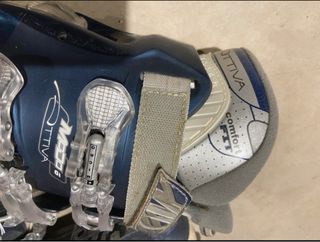 Botas de esquí de la marca Salomon. - Suela de goma roja. - Cierre de hebillas. las botas Me las puse solo dos horas, ya que me hacían daño por una operación que tengo de Tibia y peroné Fueron un regalo.