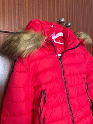 Mono de esquí de color rojo, ideal para la nieve. Cuenta con capucha y detalles acolchados. - Talla XL pero pequeña para mi parecer - Capucha con pelo sintético. - Cremallera frontal. - Bolsillos con cremallera.
