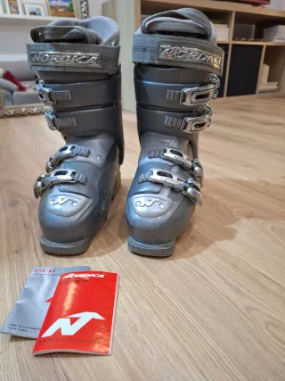 Botas de esquí de la marca Nordica, talla Mondo 25, diseñadas para ofrecer comodidad y rendimiento en la pista. - Cierre con hebillas. - Diseño en color gris. - Incluye manuales.