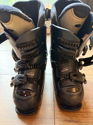 Botas de esquí técnico para mujer en talla 26. Diseñadas para ofrecer comodidad y rendimiento en la pista. - Cierre con hebillas ajustables. - Interior acolchado para mayor confort. - Diseño en negro y gris.