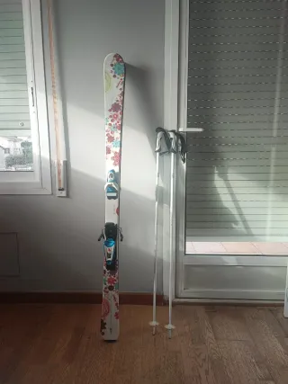 Esquis nivel intermedio. 165 cm de largo. Tienen 5 años pero subo a esquiar una o dos veces por año. Buen estado. Esquis fáciles para aprender, poco peso con estupendas fijaciones LOOK.