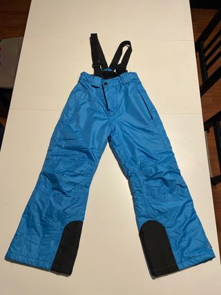 Pantalón de esquí para niño en color azul. Diseñado para mantener la comodidad y protección en la nieve. - Tirantes ajustables. - Refuerzos en la parte inferior de las perneras. - Bolsillos laterales.