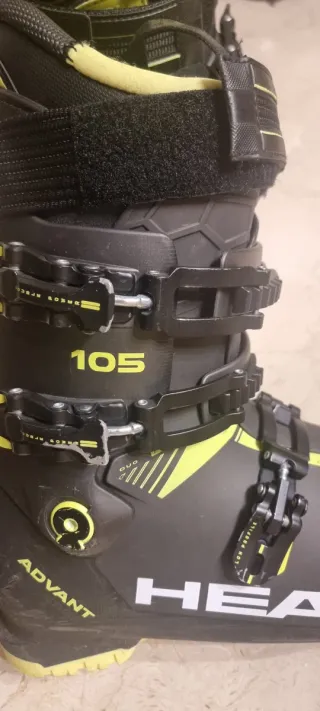 Botas de esquí Head Advant con un índice de flexión de 105. Diseñadas para ofrecer rendimiento y comodidad en la pista. - Color negro con detalles en amarillo. - Cierres de hebilla ajustables. - Correa de velcro en la parte superior.