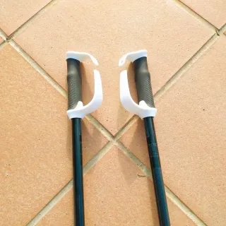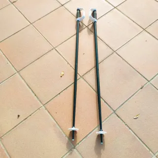 Par de bastones de esquí diseñados para niños. Son ligeros y fáciles de manejar. - Mangos ergonómicos. - Puntas de goma.