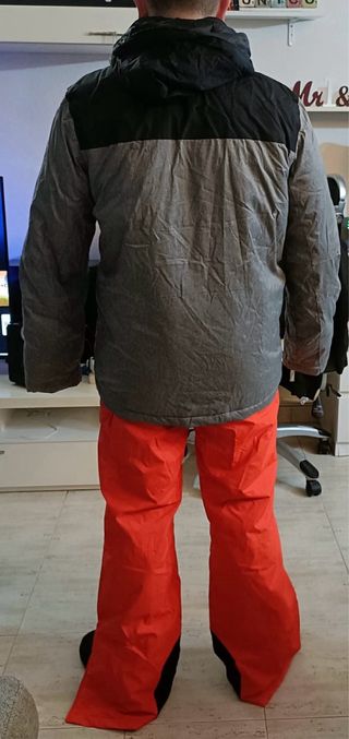 Chaqueta de snowboard o esquí en perfecto estado, usada solo un par de veces. - Diseño con estampado de cuadros en capucha y mangas. - Color principal burdeos jaspeado. - Bolsillos frontales con solapa y botón. - Puños ajustables. - Capucha desmontable. - Funda para forfait en el brazo. Posibilidad de pantalón a conjunto (135€ las dos cosas).