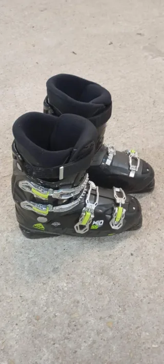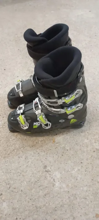 Botas de esquí para niño en talla 33. Han sido usadas solo un día. - Cierre con velcro. - Diseño en gris y negro con detalles en amarillo. - Interior forrado para mayor calidez.