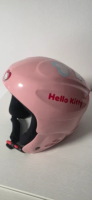 Casco de esquí infantil con diseño de Hello Kitty. - Color rosa brillante. - Adornos de Hello Kitty y nubes. - Correa de sujeción ajustable. - Talla XXS 52